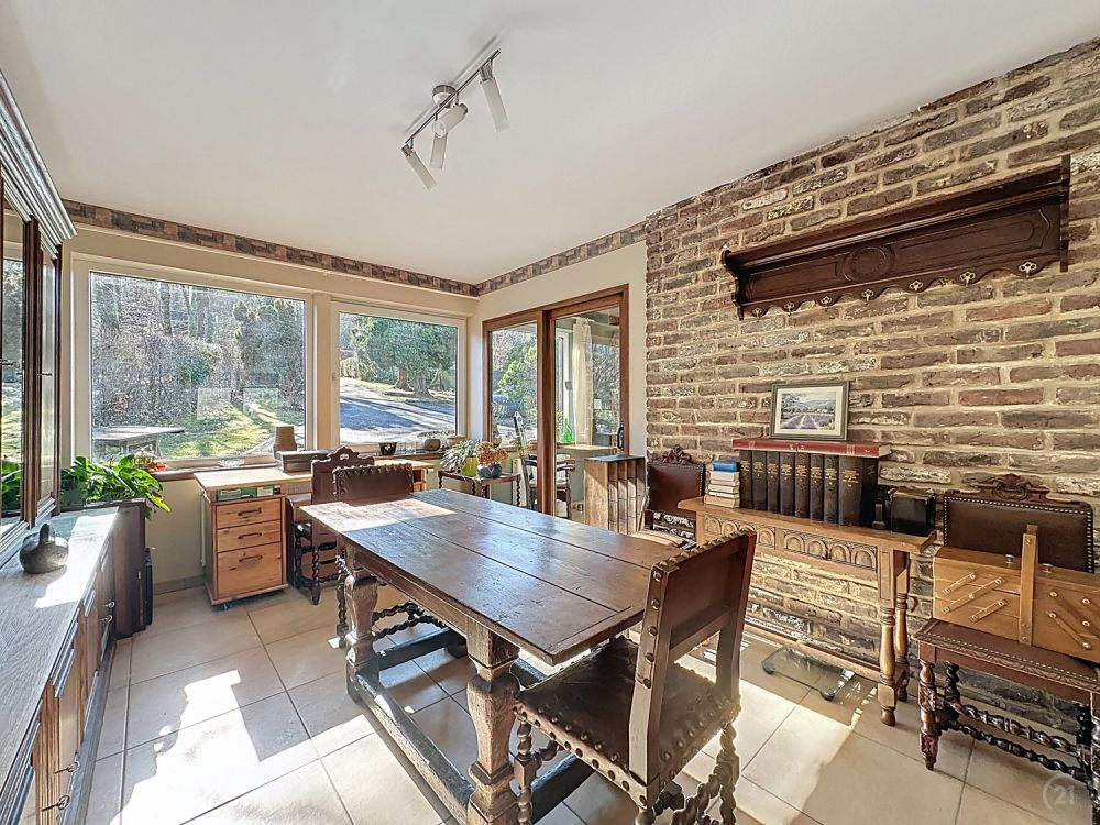 Nichée sur les hauteurs d’Esneux, dans un environnement particulièrement calme et verdoyant, cette magnifique villa vous séduira par sa situation exceptionnelle et sa vue imprenable sur la vallée. Implantée en recul de la route (± 40 mètres), la propriété bénéficie d’un cadre intime et paisible, à l’abri des nuisances, tout en restant proche des commodités et des grands axes. La villa développe de beaux volumes lumineux et se compose actuellement de trois chambres confortables et de trois salles de bains, offrant un confort de vie optimal pour une famille. Un grenier complète l’ensemble et permet un espace de rangement ou un potentiel d’aménagement supplémentaire selon vos besoins. Atout rare et particulièrement recherché : une partie professionnelle ou un appartement/studio indépendant avec accès séparé d’environ 40 m² (possibilité d’extension jusqu’à ± 60 m²). Idéal pour profession libérale, activité complémentaire, logement inter-générationnel ou mise en location. Une propriété de qualité, alliant tranquillité, vue exceptionnelle et polyvalence d’usage, dans un cadre naturel privilégié sur les hauteurs d’Esneux.