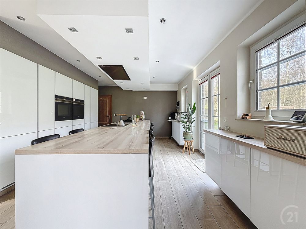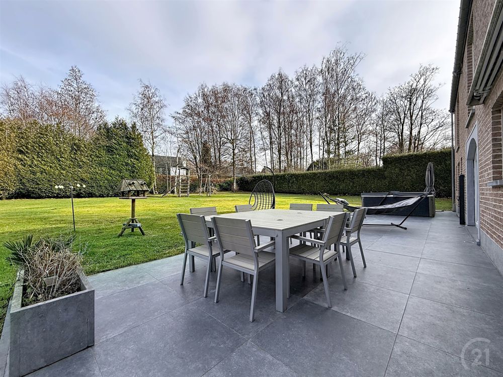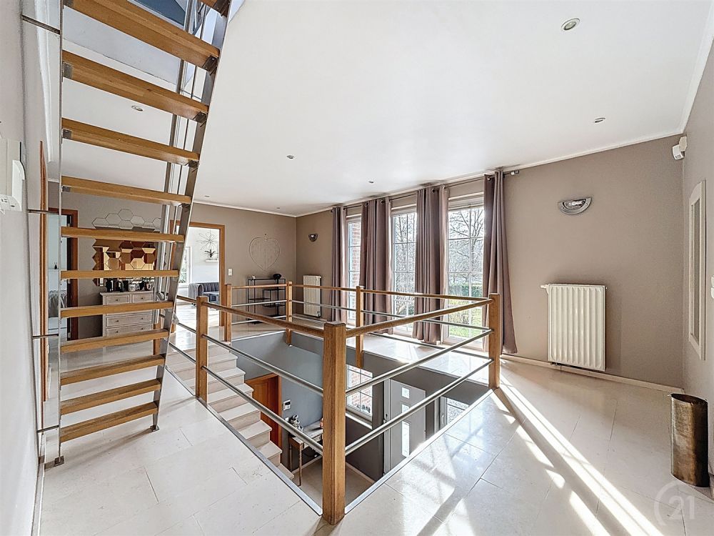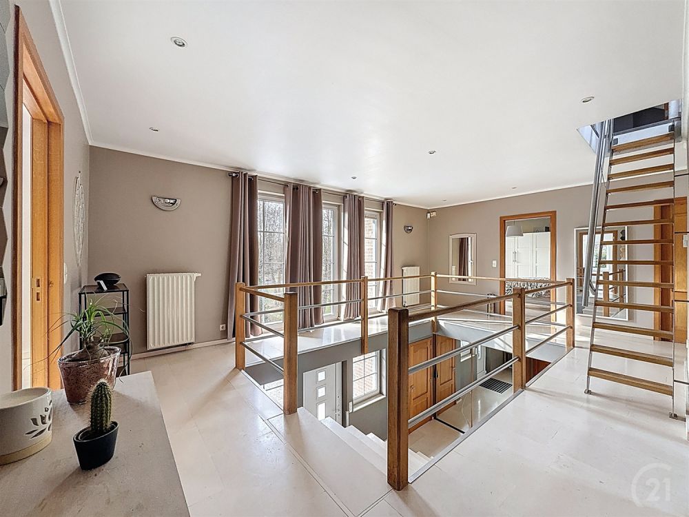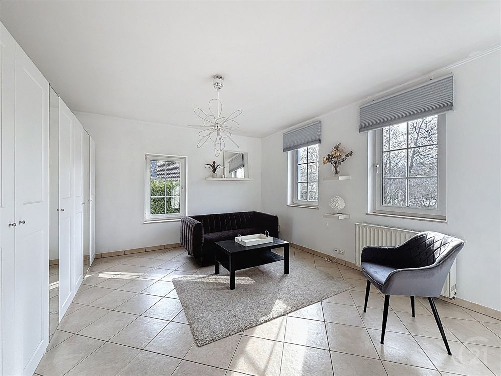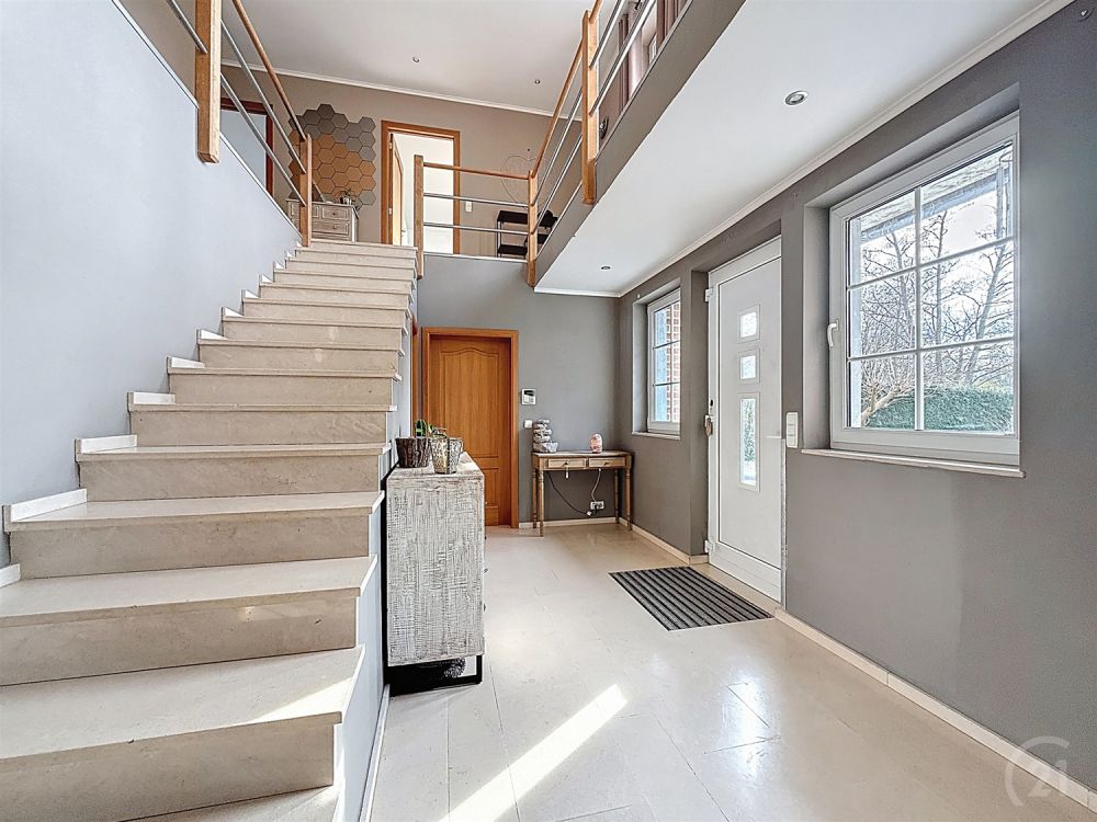 Située dans le très recherché Domaine du Bois de Rognac à Neupré, cette villa d’exception construite en 2000 séduit par ses volumes généreux et son environnement résidentiel privilégié. Développant une surface habitable de 337 m² sur un terrain de 3.200 m², elle propose une distribution idéale pour une vie de famille confortable ou une activité professionnelle à domicile : vaste salon avec feu ouvert, salle à manger et séjour lumineux, cuisine entièrement équipée, 6 chambres et 2 bureaux. Les espaces de vie s’ouvrent harmonieusement sur la terrasse et le grand jardin, offrant un cadre verdoyant et intime.